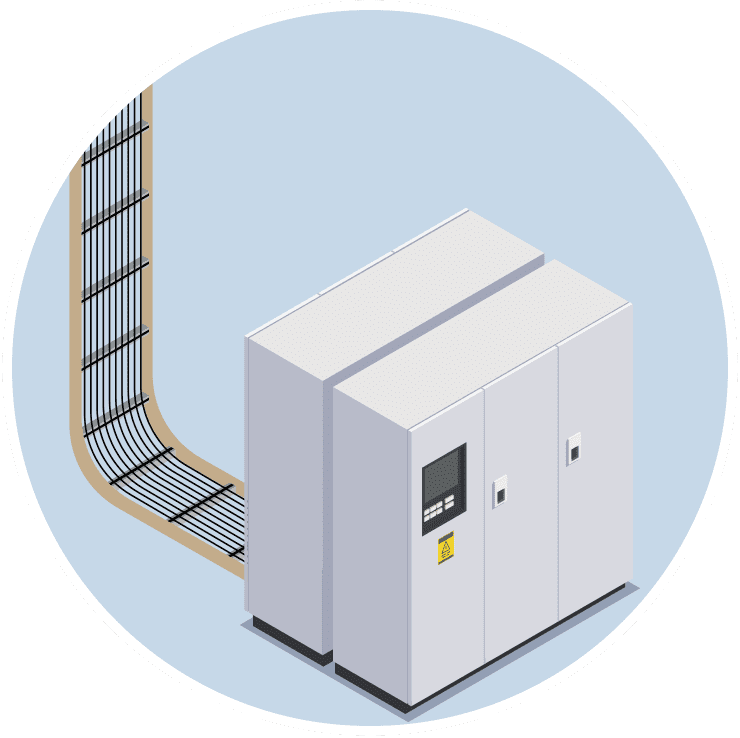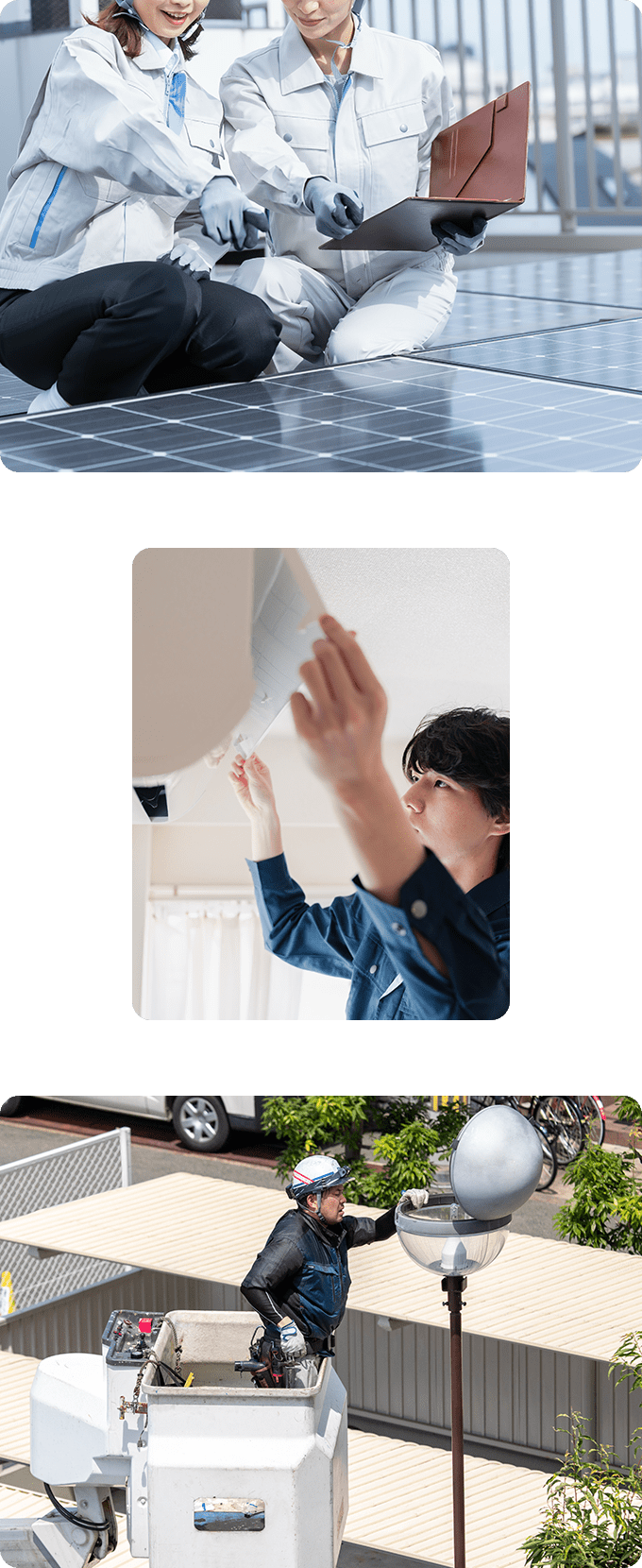 建物や工場の電力供給を支える基盤設備の施工・更新を行っています。